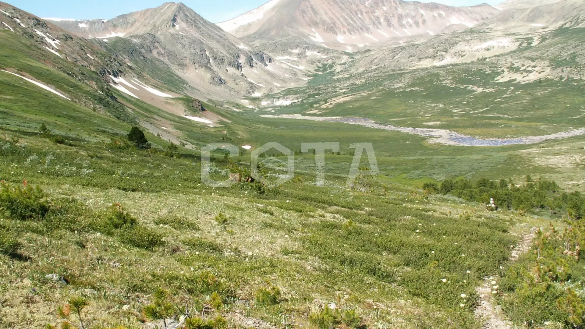 Каменистой тропой между узловатых кедров, противостоящих постоянным ветрам, поднимаемся в зону высокогорной тундры. По пути встречаются заросли черники, которой можно от души полакомиться в августе. Во все стороны, насколько видит глаз, открывается горная страна.<br />На самом перевале Таман Ажу сплошные каменные россыпи и низкорослые яркие цветы. Здесь каждый путешественник по местному обычаю с просьбой и благопожеланием присоединяет свой камень к пирамиде обо, выложенной в честь духа-хозяина перевала. Чтобы не заблудиться в плохую погоду, тропа здесь отмечена маленькими горками камней.<br />Спускаемся с перевала мимо Верхне-Чемальского озера, по камушкам переходим речку Чемал и попадаем в долину Тогусколь. Сочные густые травы с множеством цветов образуют бесконечный сказочный ковер. Хорошие пастбища долины привлекают сюда на все лето полудикие табунчики коней, пасущиеся то тут, то там.<br />Поднимемся и пройдем по левому склону гор, обрамляющих долину, чтобы сверху полюбоваться на эти просторы. Вещи уже ждут нас на стоянке (высота 1800м) недалеко от Тогускольских озер. (дневной переход 16км)